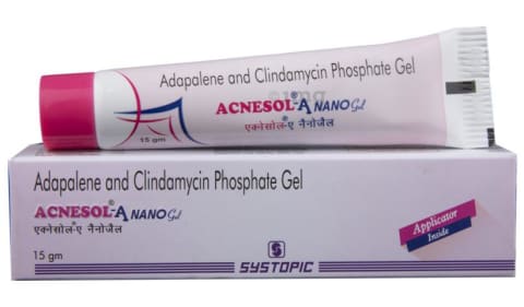 Acnesol A Nano Gel is a combination of two drugs; namely, Adapalene and Clindamycin used to treat acne (pimples). Adapalene is a retinoid (human-made vitamin A) that loosens the cells in the skin’s surface and unblocks pores by reducing the production of oil in the skin. Thereby, decreases pimples, spots, whiteheads and blackheads. Also, Adapalene increases the production of new skin cells and helps in natural exfoliation (removal of dead skin cells) of outer layers of the skin. Clindamycin is a broad-spectrum antibiotic that acts against both aerobic (grow in the presence of oxygen) and anaerobic (grow in the absence of oxygen) gram-negative and gram-positive bacteria. Clindamycin inhibits the production of essential proteins that are necessary for bacteria to grow, multiply and increase in numbers. Together it stops or slows down the growth of bacteria, causing acne and heals the skin by reducing swelling and redness.