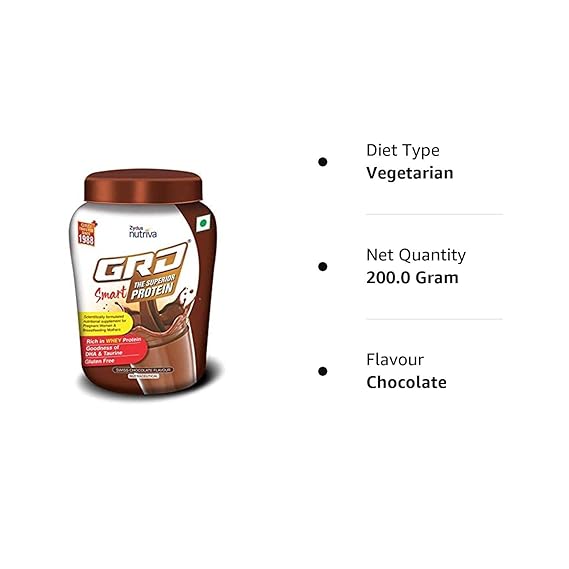 • Each serving of 30g GRD Smart offers 9 gm Whey protein.GRD Smart comes in Chocolate & Vanilla flavor.