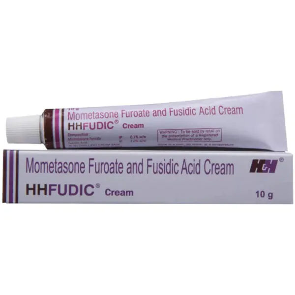 HHFudic Cream is composed of two medicines: Mometasone (corticosteroid) and Fusidic acid (antibiotic). Mometasone belongs to the class of corticosteroids. Corticosteroids have anti-inflammatory, immunosuppressive and antiproliferative (inhibit cell growth) properties. It blocks the production of prostaglandins (chemical messengers) that make the affected area red, swollen and itchy. On the other hand, Fusidic acid is an antibiotic and prevents the synthesis of essential proteins required by bacteria to carry out vital functions. It is used to treat infections like dermatitis (inflammation of the skin), spots, cuts, grazes, impetigo (weeping, crusty and swollen patches of skin) and folliculitis (inflammation of one or more hair follicles).